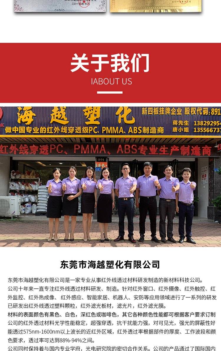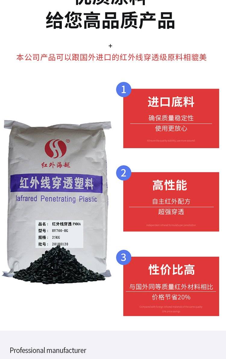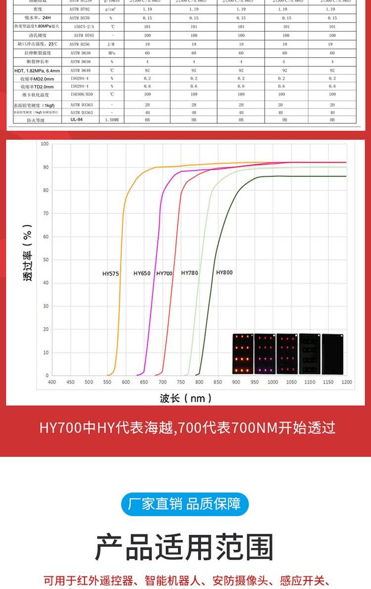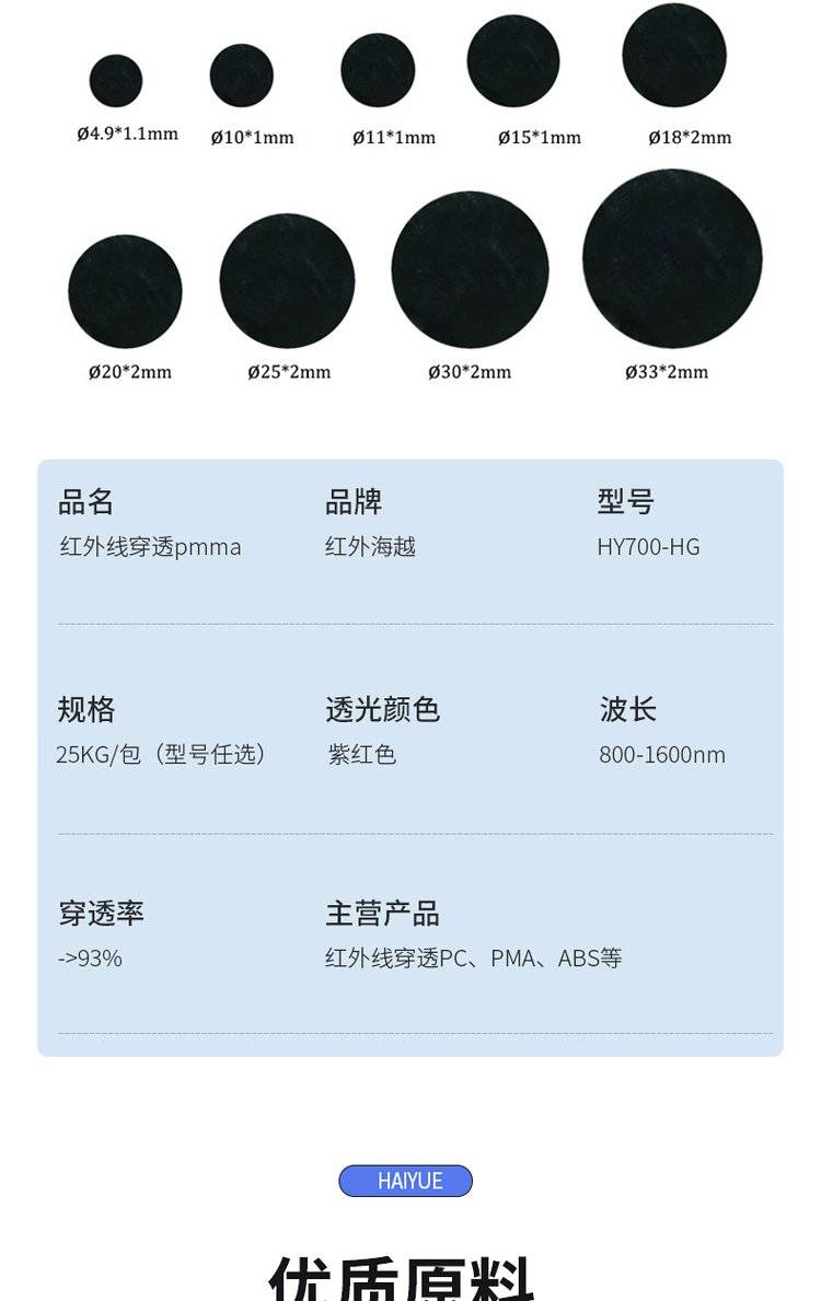 Infrared penetrating black red light plastic hy 700-hk innovative ir 700nm material