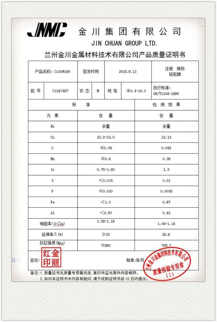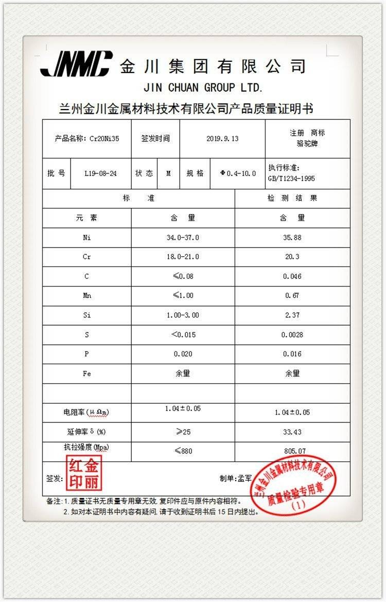 Heating component: nickel wire in kimkawa