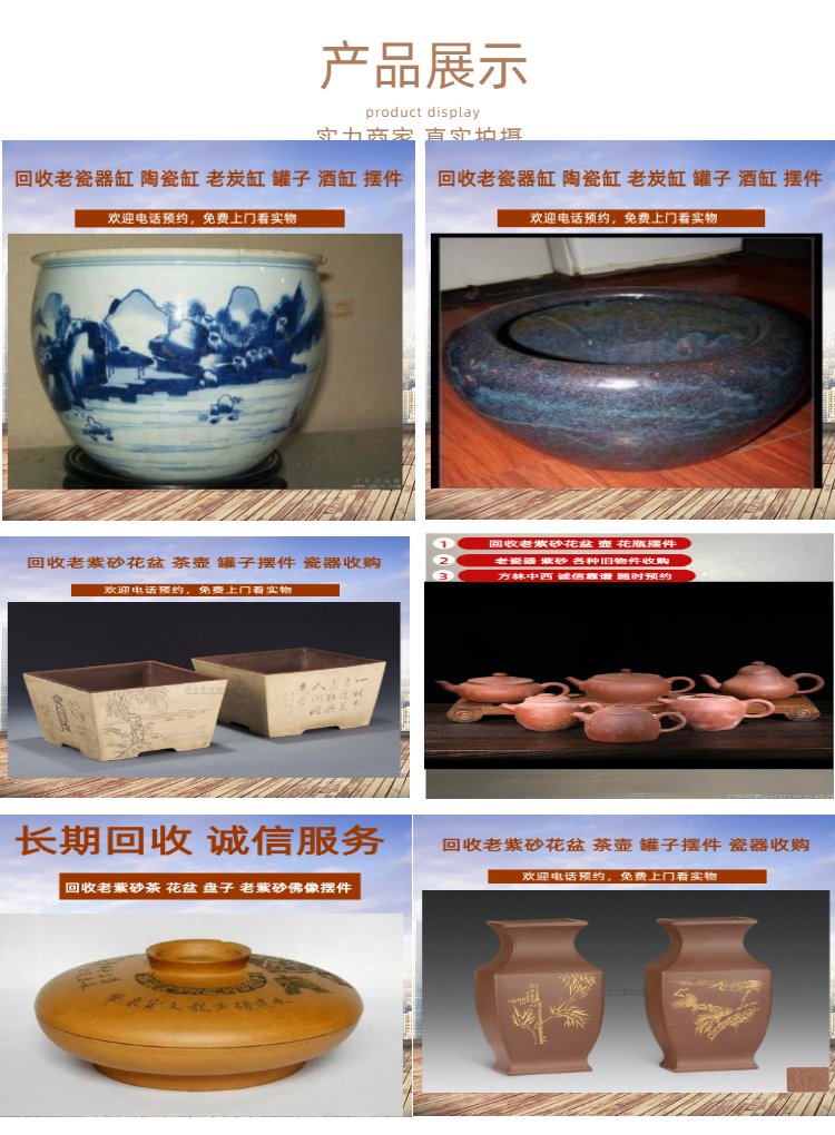 All kinds of old china to recycle old purple sandpots, flower pots, and old wood pens, the same day