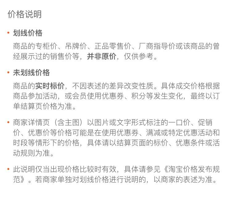 特别提示:商品详情页中(含主图)以文字或者图片形式标注的抢购价等价格可能是在特定活动时段下的价格,商品的具体价格以订单结算页价格为准或言是您与商家联系后协商达成的实际成交价格为准;如您发现活动商品价格或活动信息有异常,建议购买前先咨询商家。