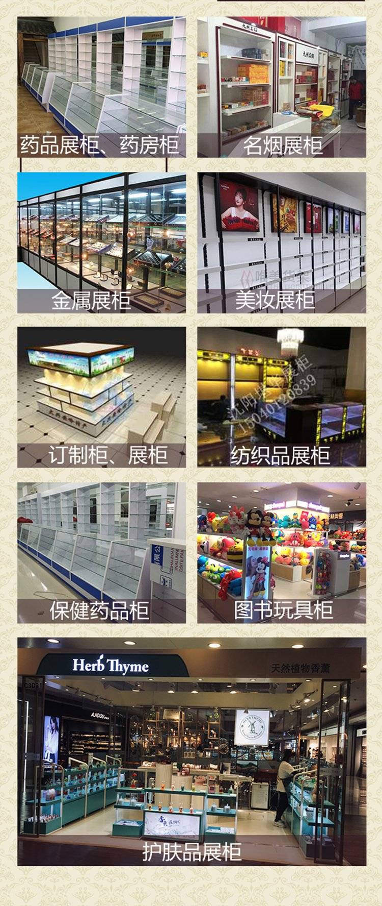 Design of interior and exterior decorations, construction, exhibition display services, exhibition cabinet design, installation, display counter making, woodwork processing, manufacture, sale