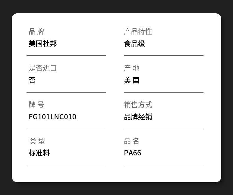 Pa66 u. S. F. G. 101l nc010 food class lubrication note plastic class polyamide tree lipid