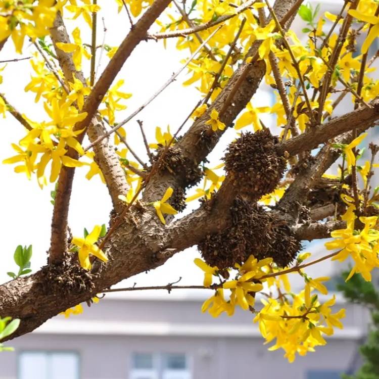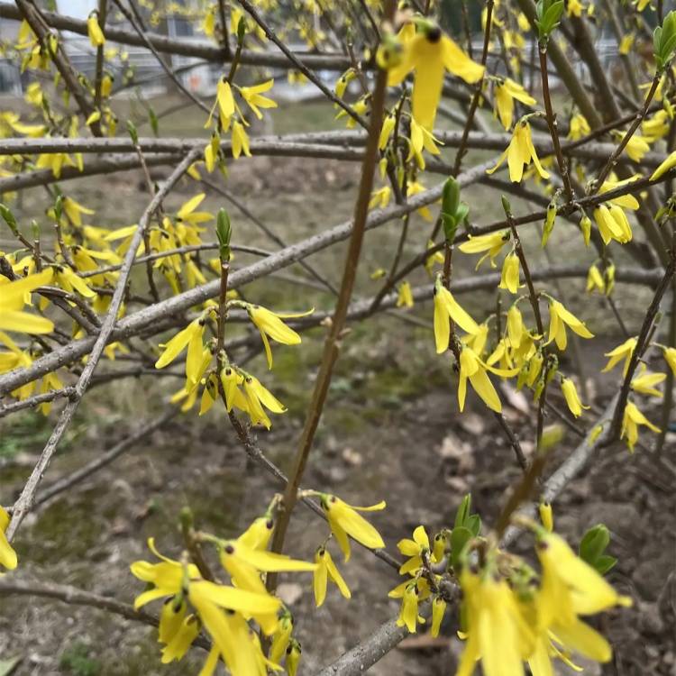 The gold bells, the sprouts, the garden base greens the edges of the vegetative landscape