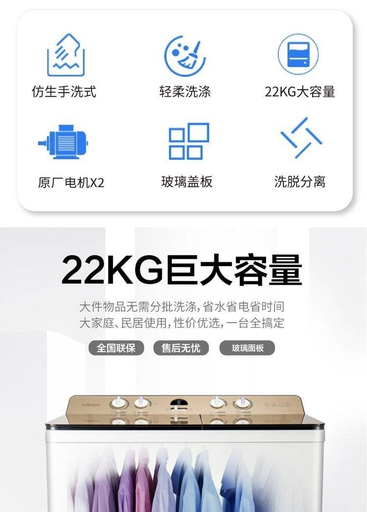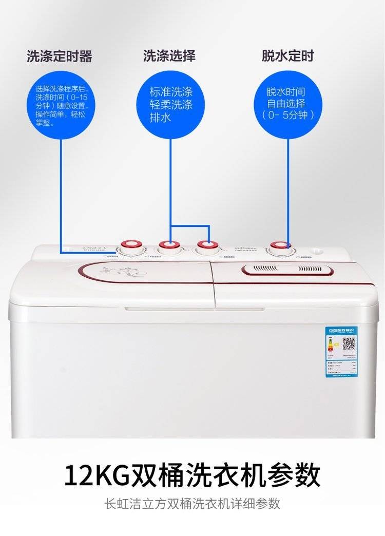 121522 kg of long rainbow semi-automatic washing machine double-barrel wheel home double-barrel capa