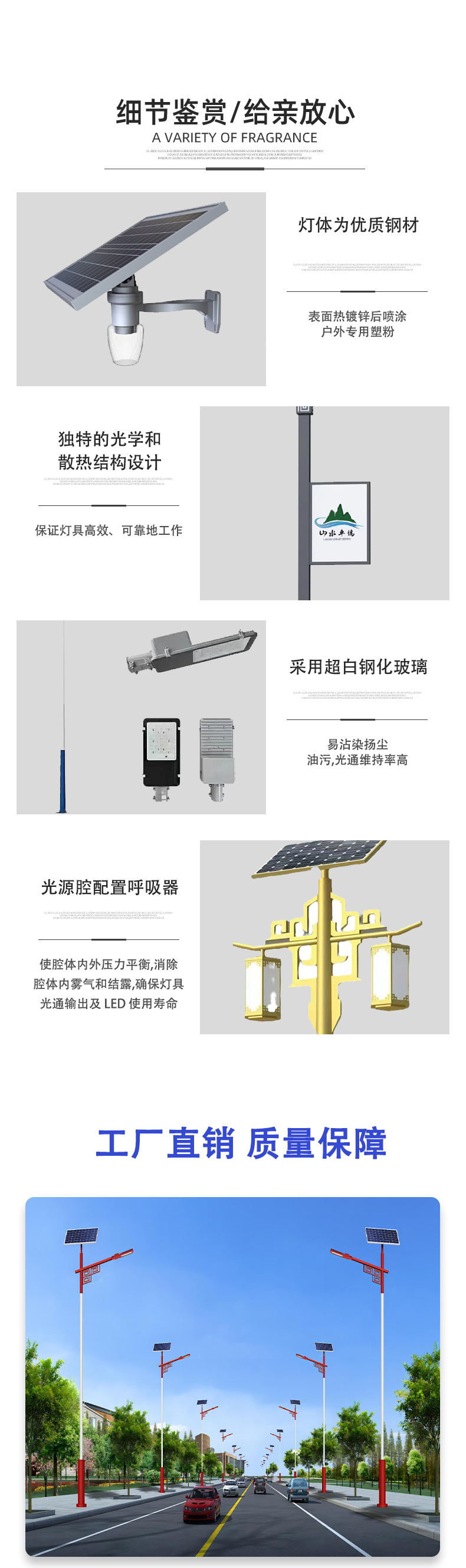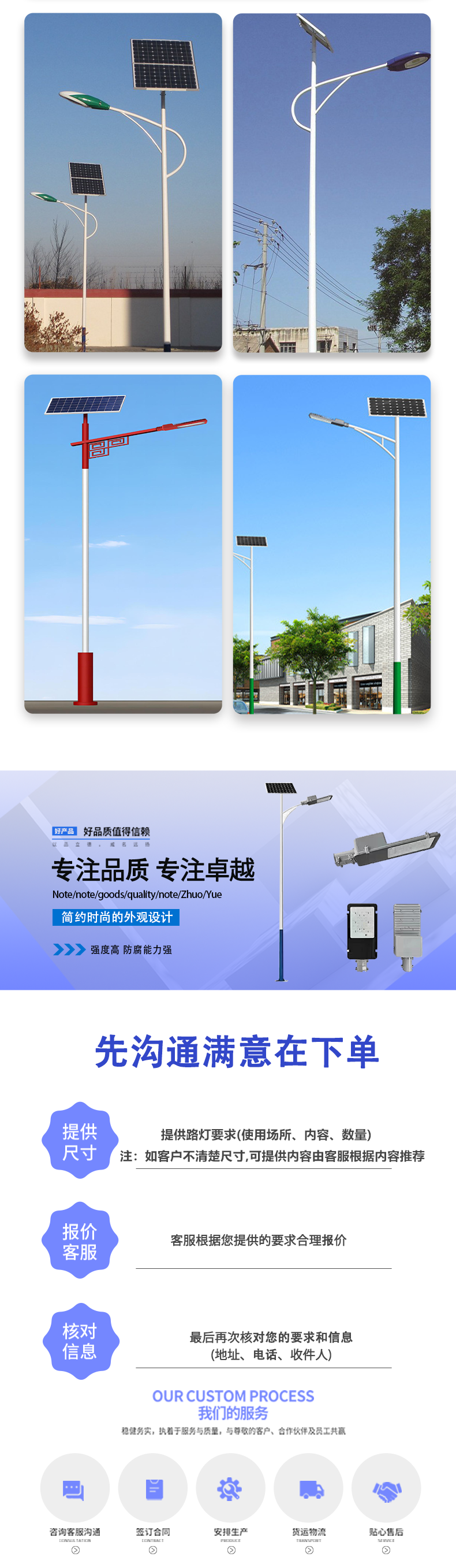 6-metre-50-watt solar lamp, 6-metre-75-watt solar light, 6-metre-120-watt solar light, 7-metre-50-watt solar light and 7-metre-75-watt solar light