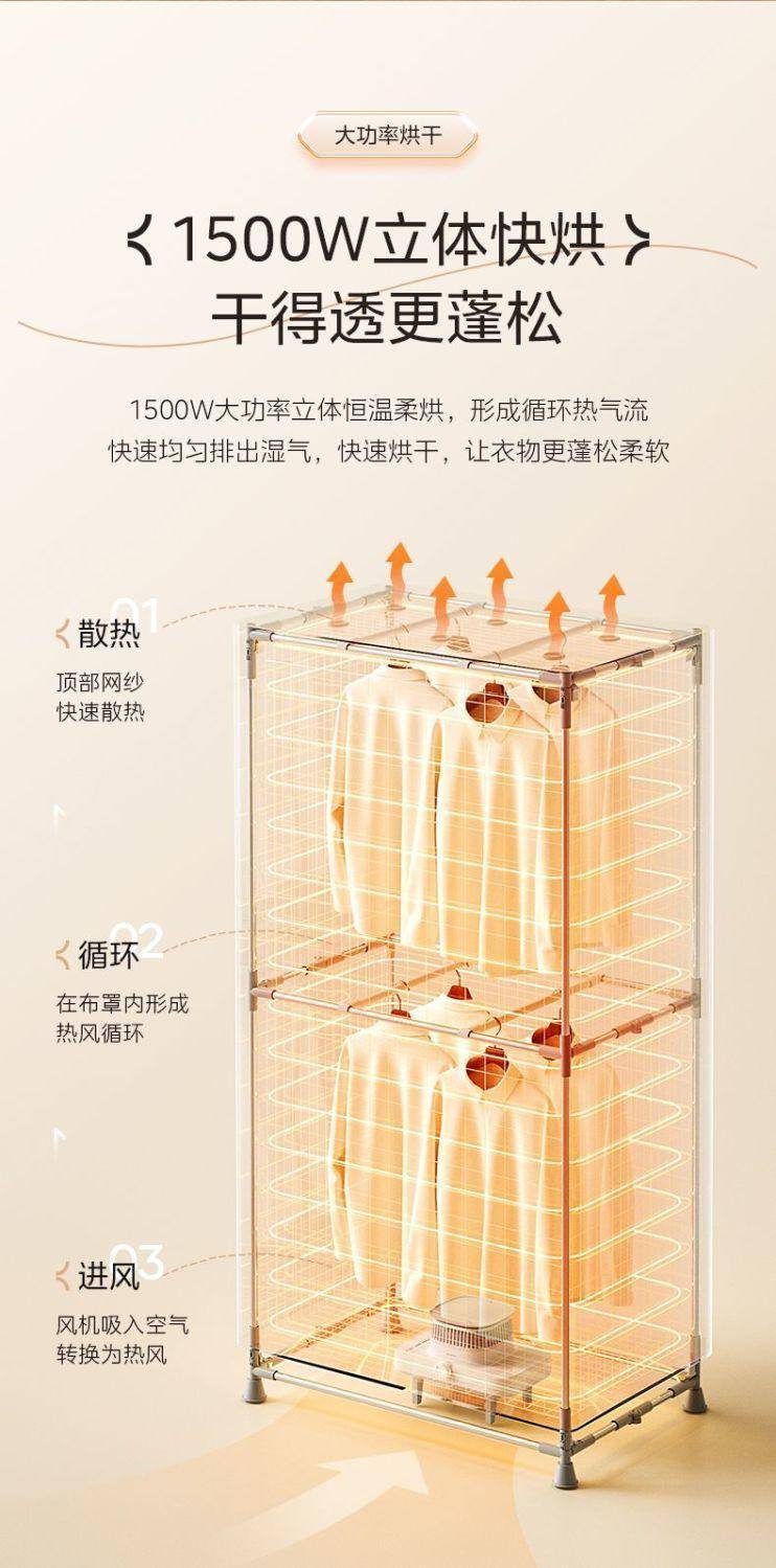 The beautiful dryer house drys with a high-capacity dryer for clothes that can be folded off
