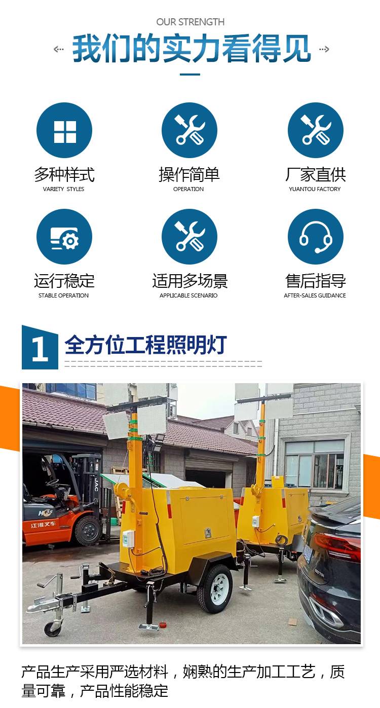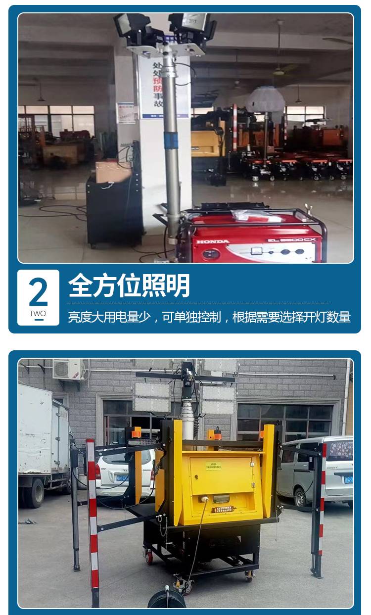 Emergency smart lighting, automatic lift-down mobile lighting van, site lighting, light work. Lights