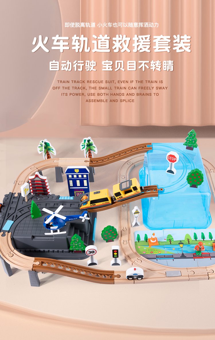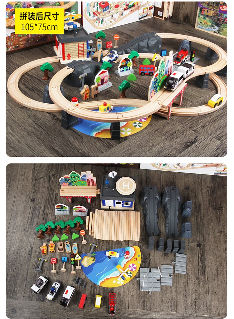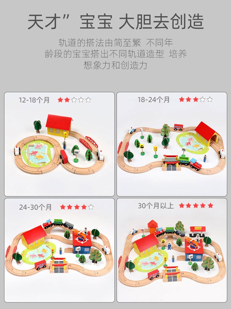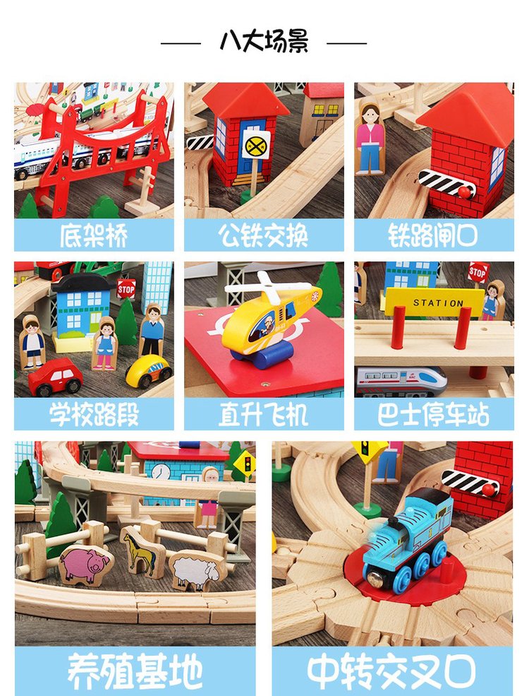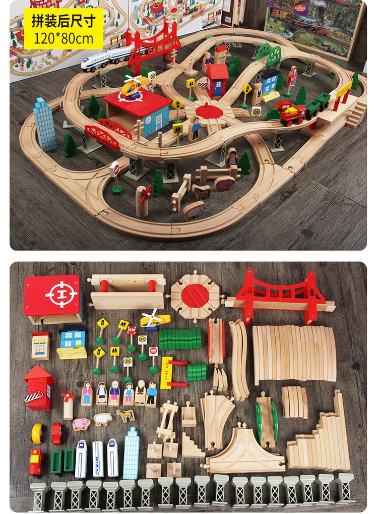 A wooden little train orbital set, magnetic electric car headwoods, wiring children's toys