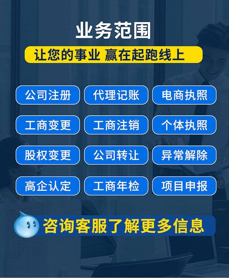 Financial information consulting, enterprise management consulting, enterprise registration procedures agency services, enterprise tax declaration procedures agency services, intellectual property agency, trademark agency, agency bookkeeping, business inf