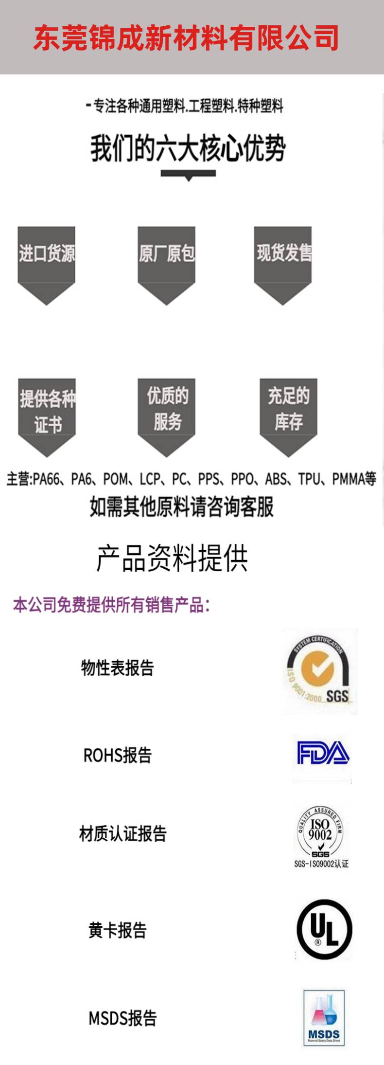 General projects, research and development of new material technology, sales of synthetic materials, sales of plastic products, sales of engineering plastics and synthetic resins, import and export of goods