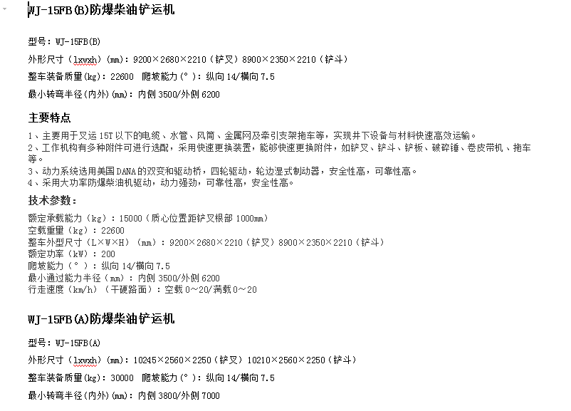 Wj-15fb(b) blast-proof diesel shovels, strong ramping, power, reliability
