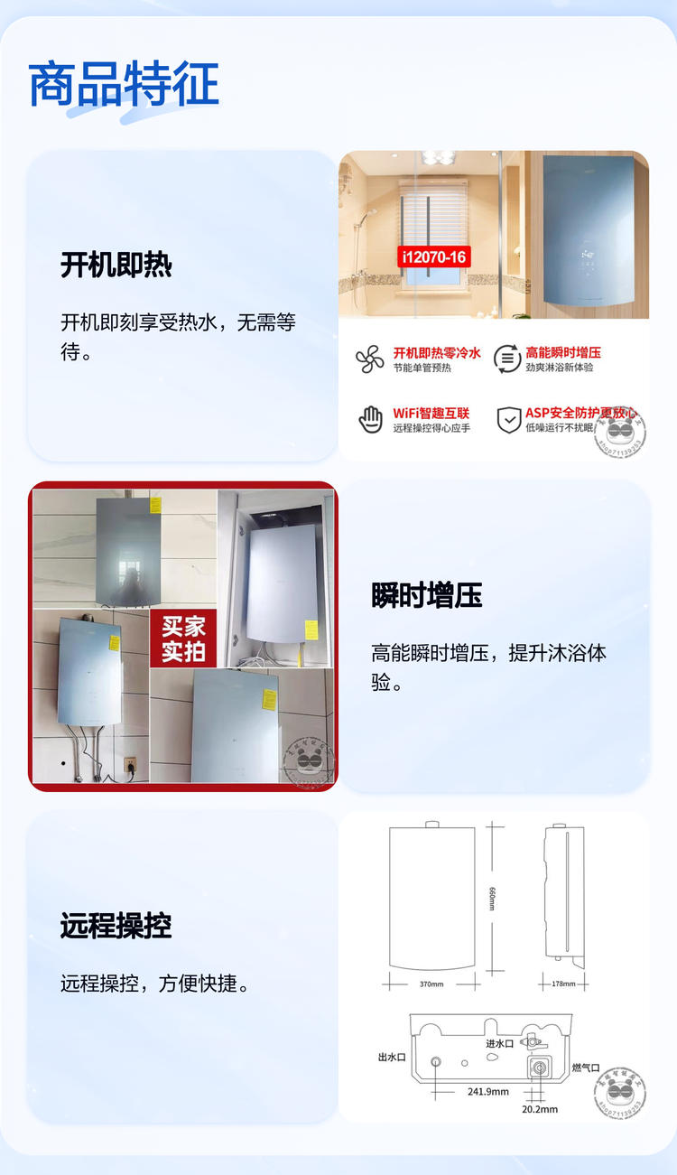 Zero-cold-water gas hot water heater, china, i 12071/i 12070-16 litres of natural gas protection int