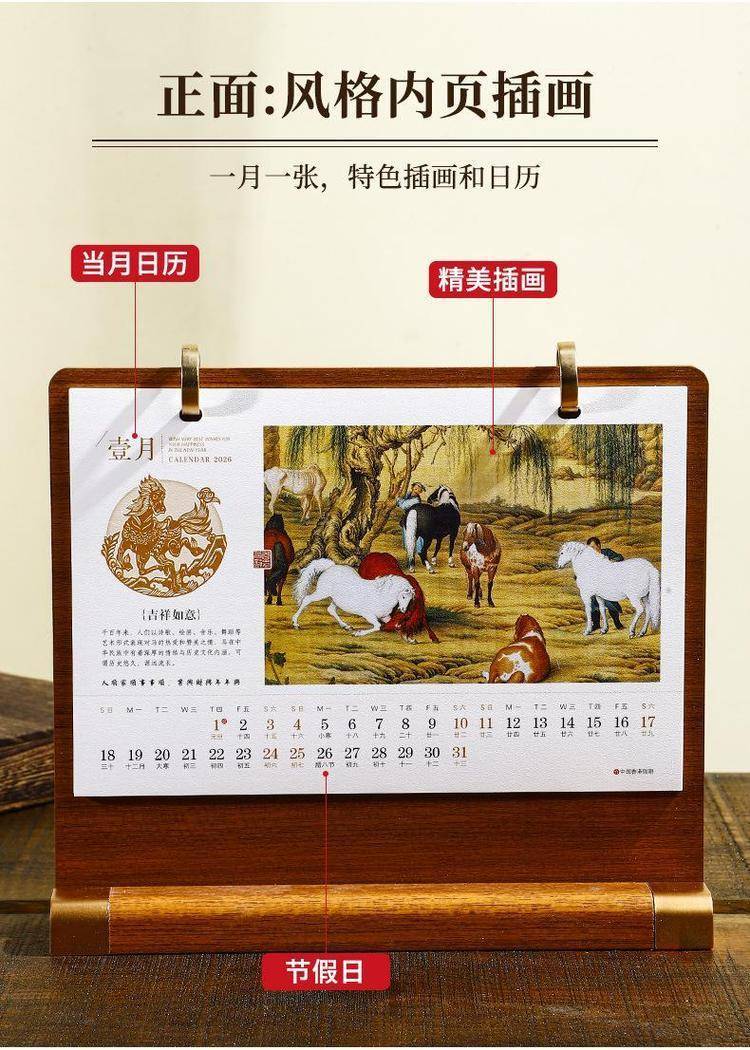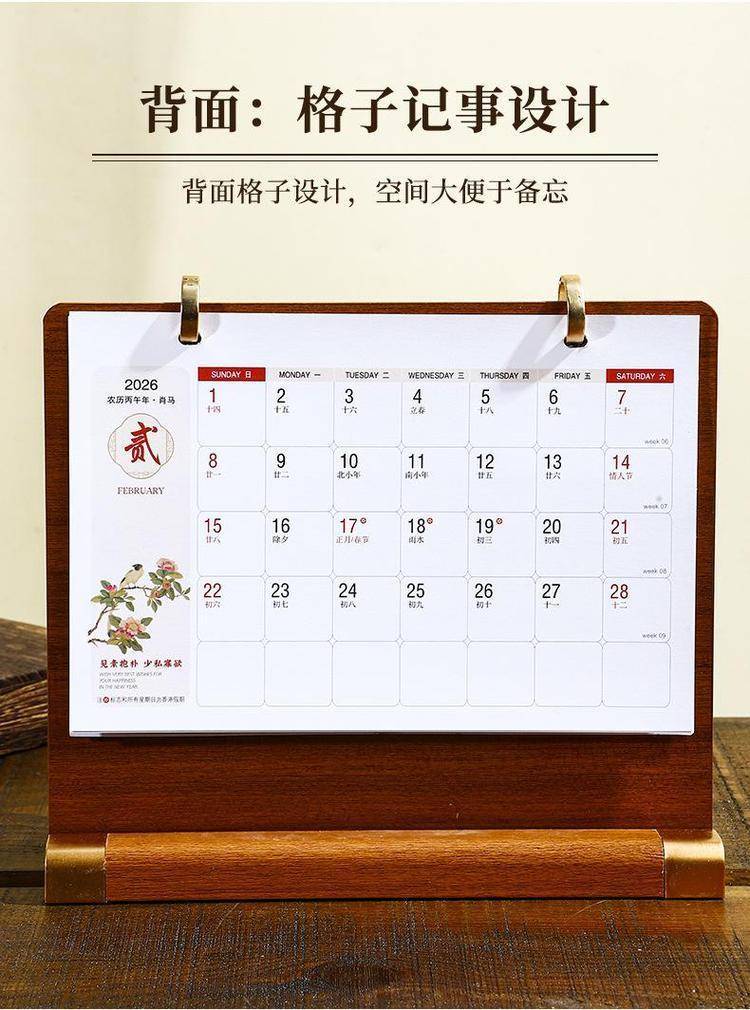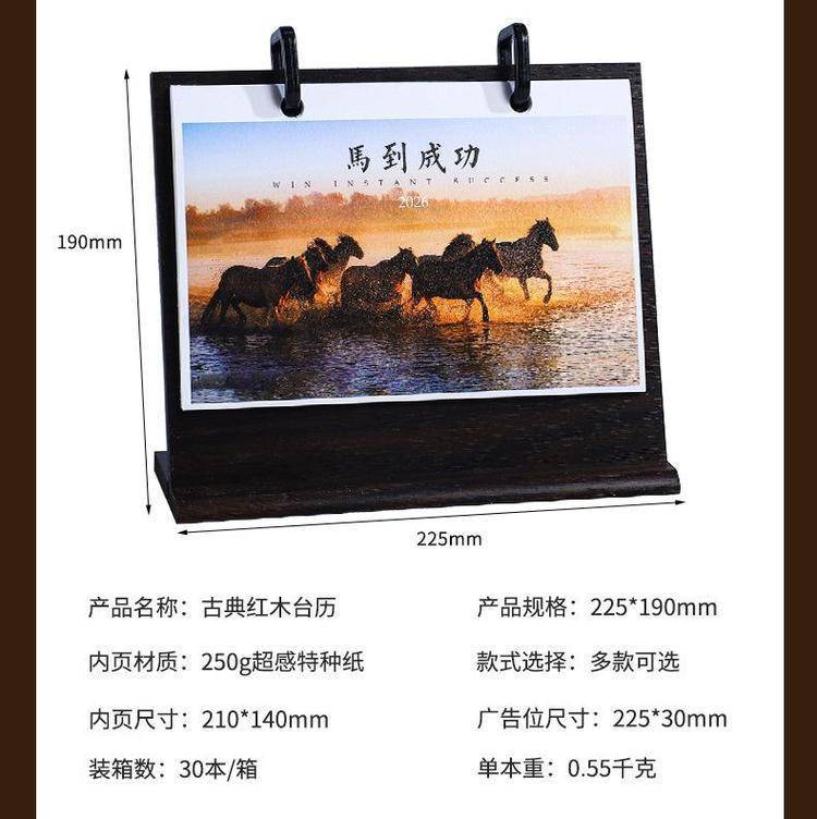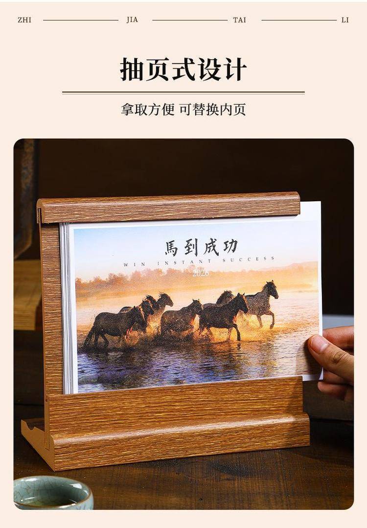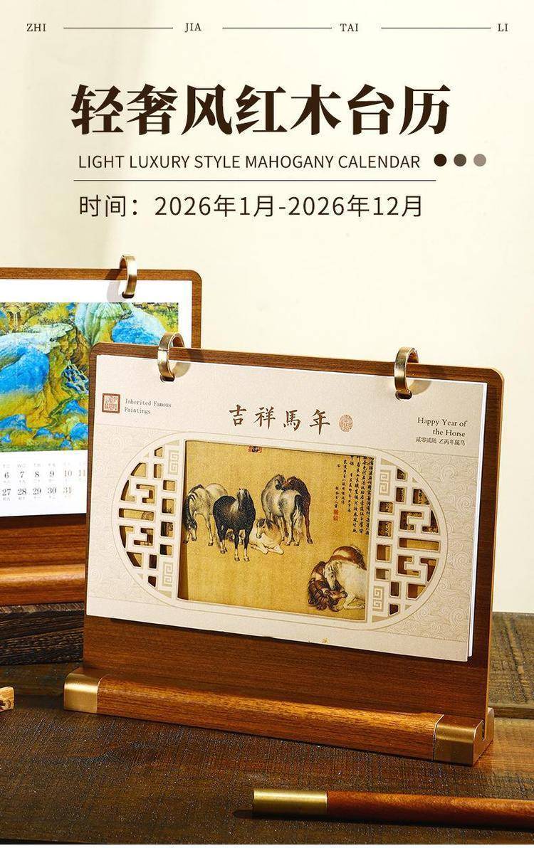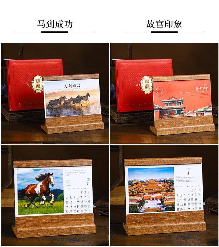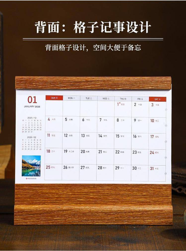 The wood table is customised for 2026 calendar desktop placements in high-end, state-of-the-art comm