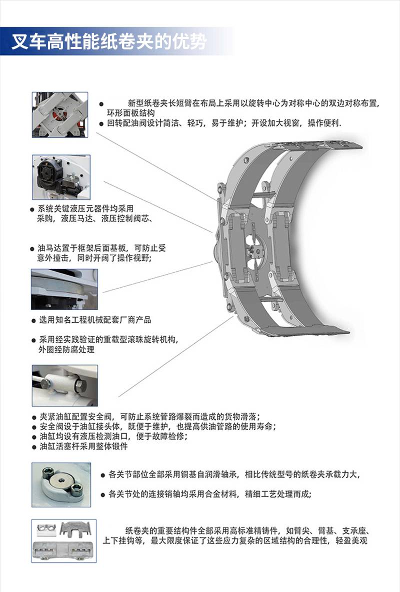 Forklift forklift is a 360-degree rotating electric operation with accessories paper rolls and hugs