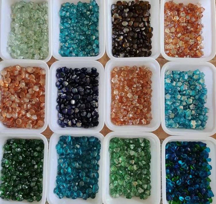 Archaeological colours of children with glass cashew and stone aquariums rock head