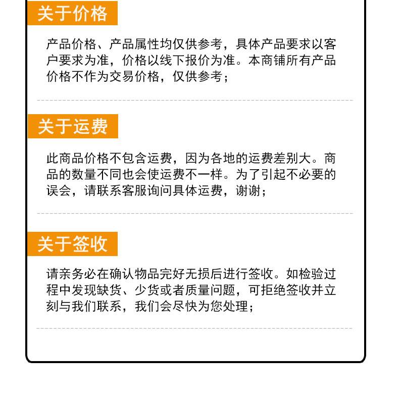 特别提示:商品详情页中(含主图)以文字或者图片形式标注的抢购价等价格可能是在特定活动时段下的价格,商品的具体价格以订单结算页价格为准或言是您与商家联系后协商达成的实际成交价格为准;如您发现活动商品价格或活动信息有异常,建议购买前先咨询商家。
