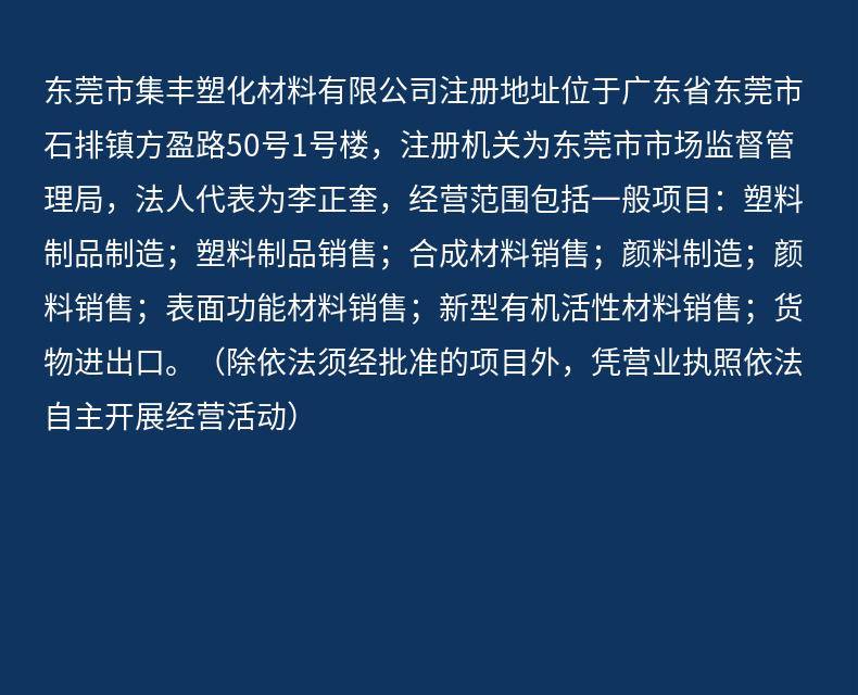 General projects, plastics manufacture, plastics sales, synthetic materials sales, pigments manufacture, paint sales, surface functional materials sales, new organic active materials sales, goods import and export