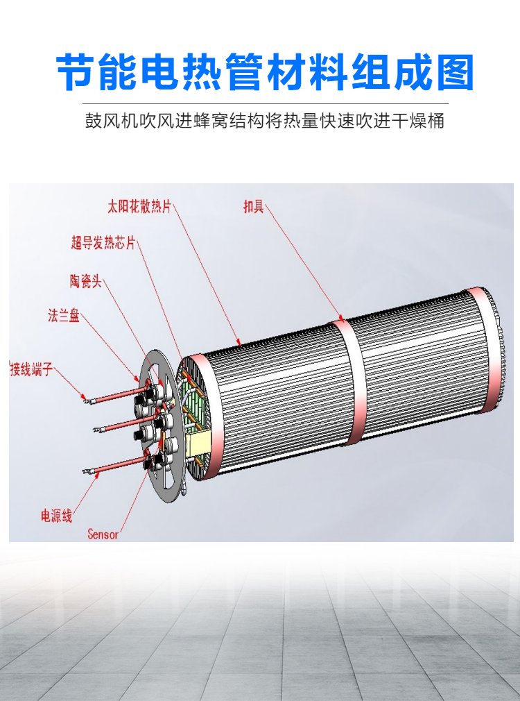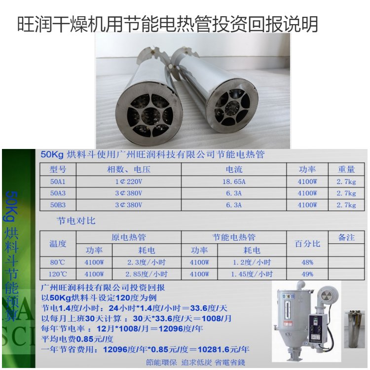 Energy-efficient heat tube for 75kg dryer, 4,100w power, 380v electro-thermal element, 30-55% power