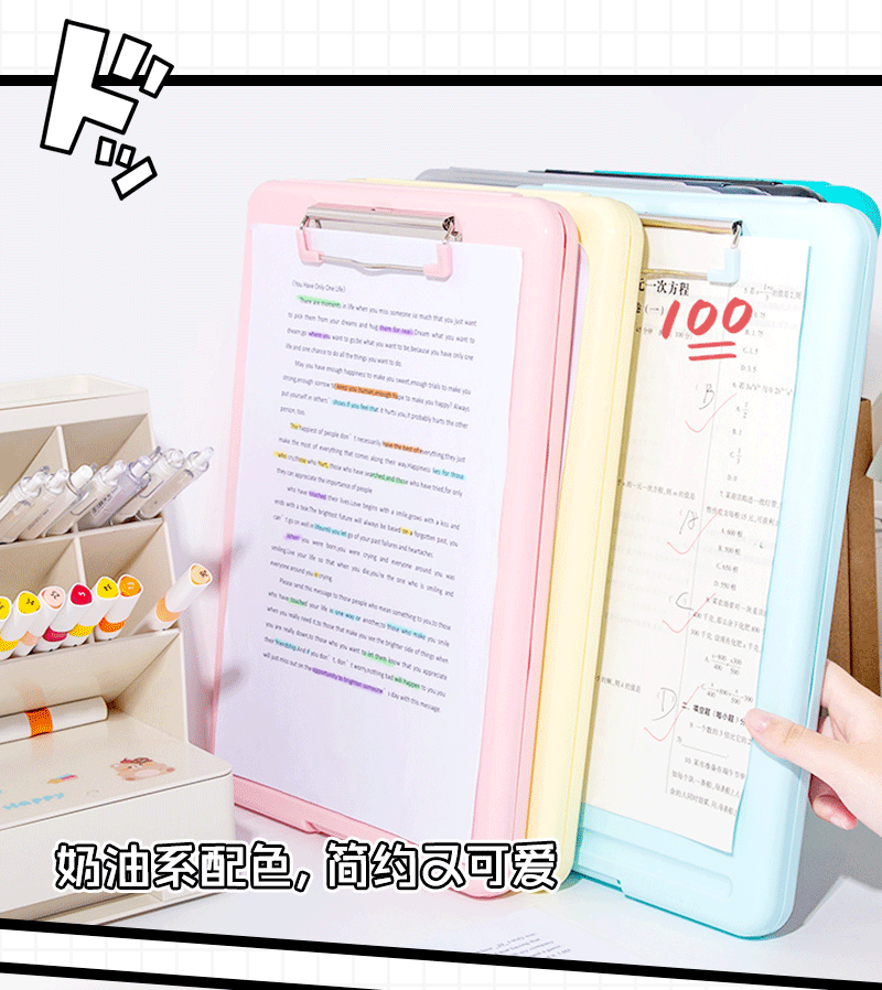 One thing, two multi-purpose a4-boards, a tablet test to collect folders for primary school students