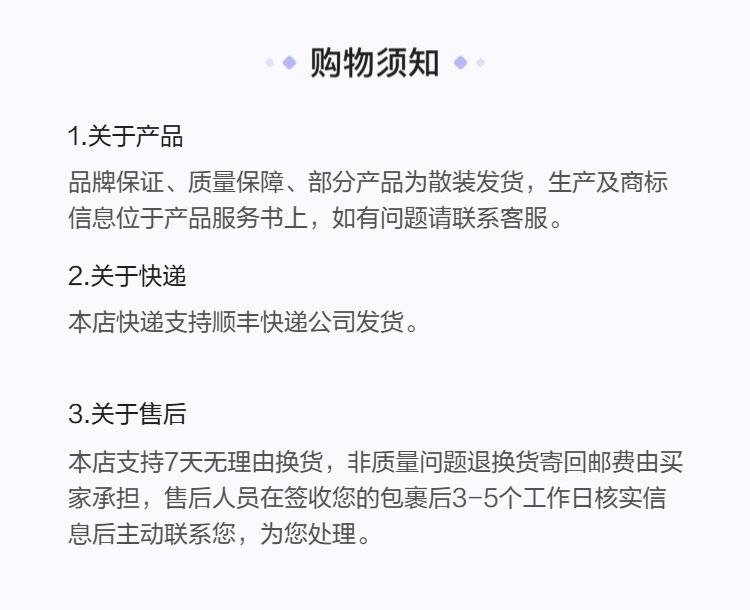特别提示:商品详情页中(含主图)以文字或者图片形式标注的抢购价等价格可能是在特定活动时段下的价格,商品的具体价格以订单结算页价格为准或言是您与商家联系后协商达成的实际成交价格为准;如您发现活动商品价格或活动信息有异常,建议购买前先咨询商家。