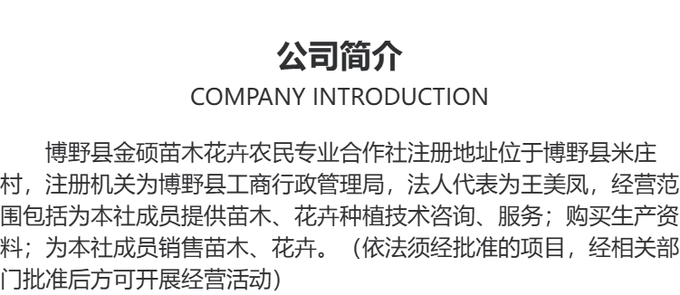 Boye County Jinshuo Nursery and Flower Farmers' Professional Cooperative企业会员No.1Year