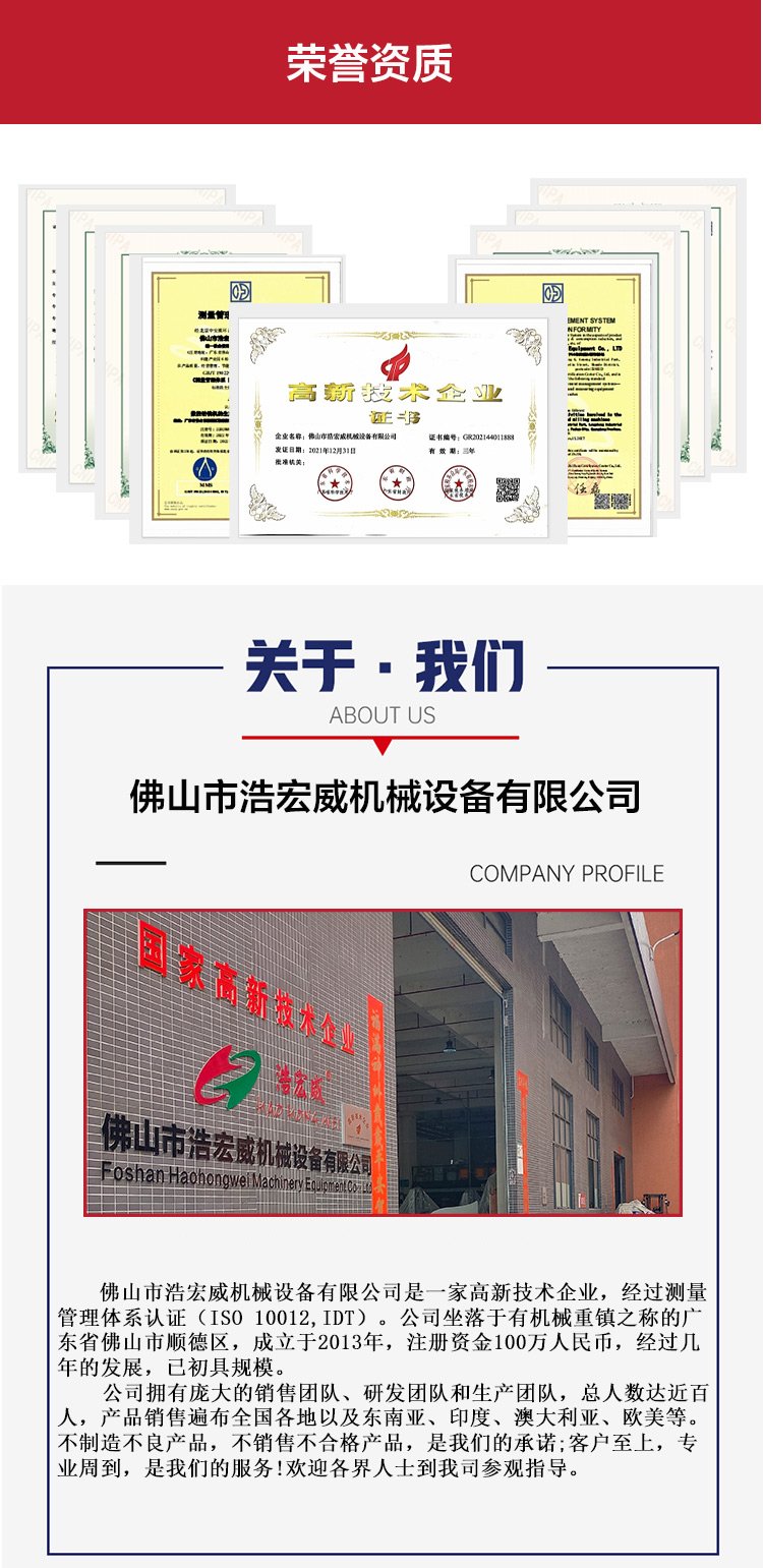 Foshan Haohongwei Machinery Equipment Co., Ltd企业会员No.1Year