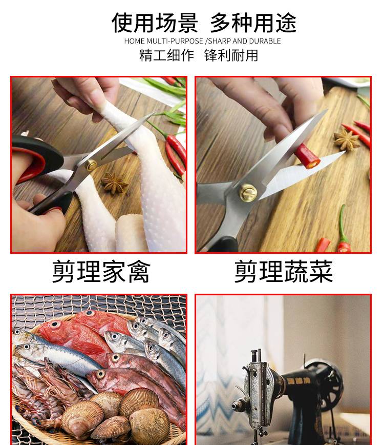A strong family with a scissor stainless steel kitchen with a chicken bone cutter. Paper