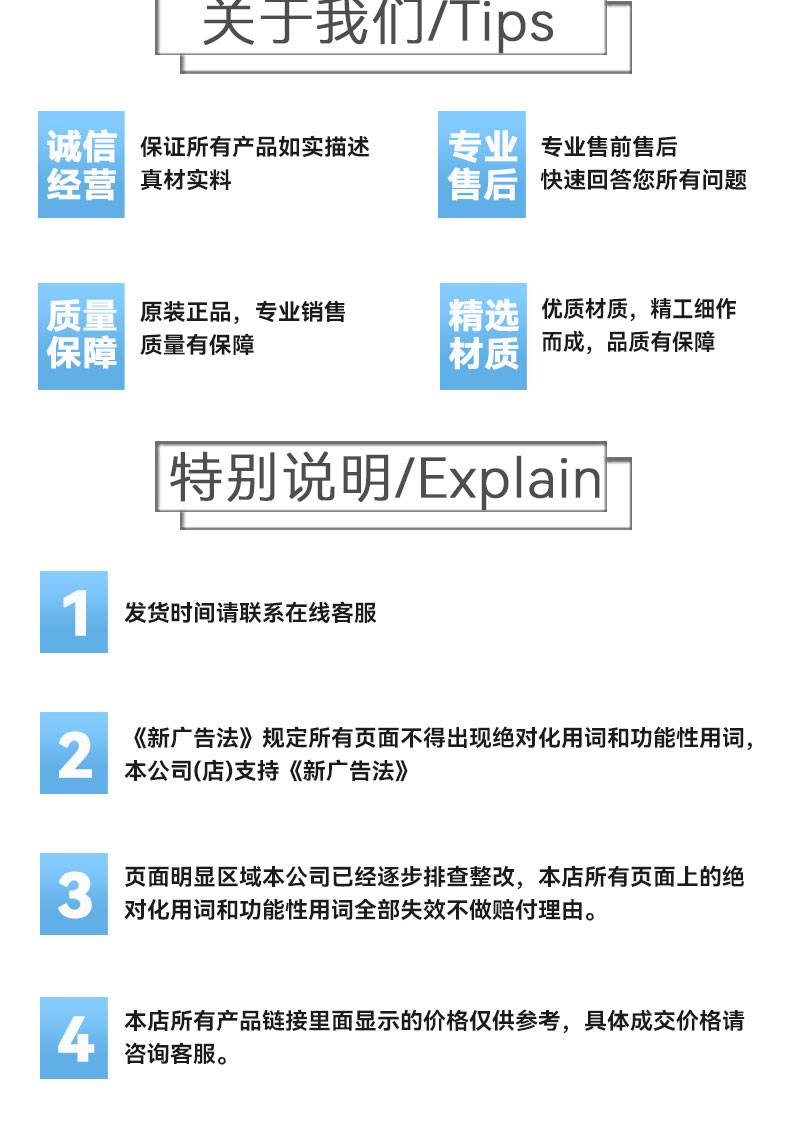 特别提示:商品详情页中(含主图)以文字或者图片形式标注的抢购价等价格可能是在特定活动时段下的价格,商品的具体价格以订单结算页价格为准或言是您与商家联系后协商达成的实际成交价格为准;如您发现活动商品价格或活动信息有异常,建议购买前先咨询商家。