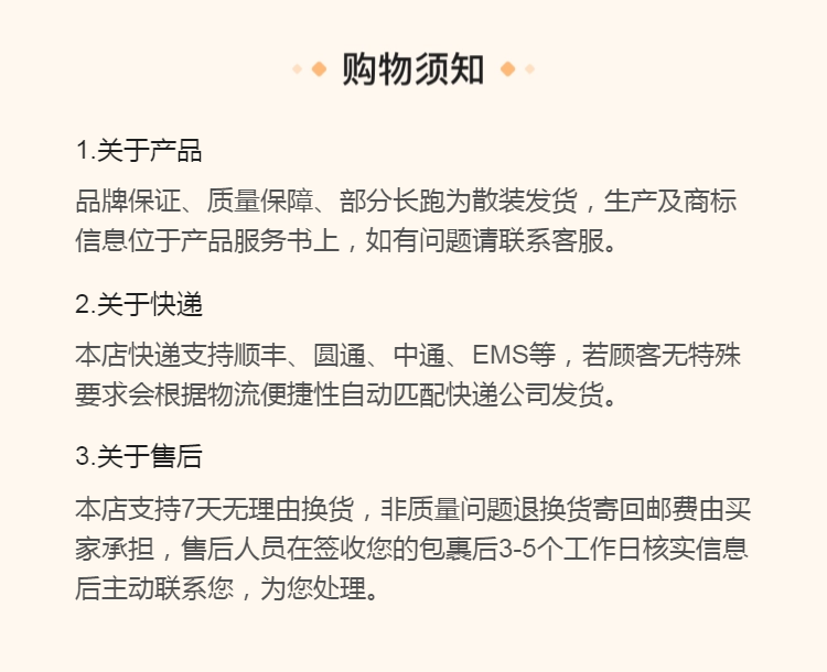 特别提示:商品详情页中(含主图)以文字或者图片形式标注的抢购价等价格可能是在特定活动时段下的价格,商品的具体价格以订单结算页价格为准或言是您与商家联系后协商达成的实际成交价格为准;如您发现活动商品价格或活动信息有异常,建议购买前先咨询商家。
