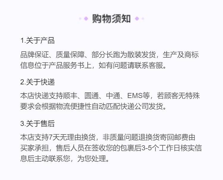 特别提示:商品详情页中(含主图)以文字或者图片形式标注的抢购价等价格可能是在特定活动时段下的价格,商品的具体价格以订单结算页价格为准或言是您与商家联系后协商达成的实际成交价格为准;如您发现活动商品价格或活动信息有异常,建议购买前先咨询商家。