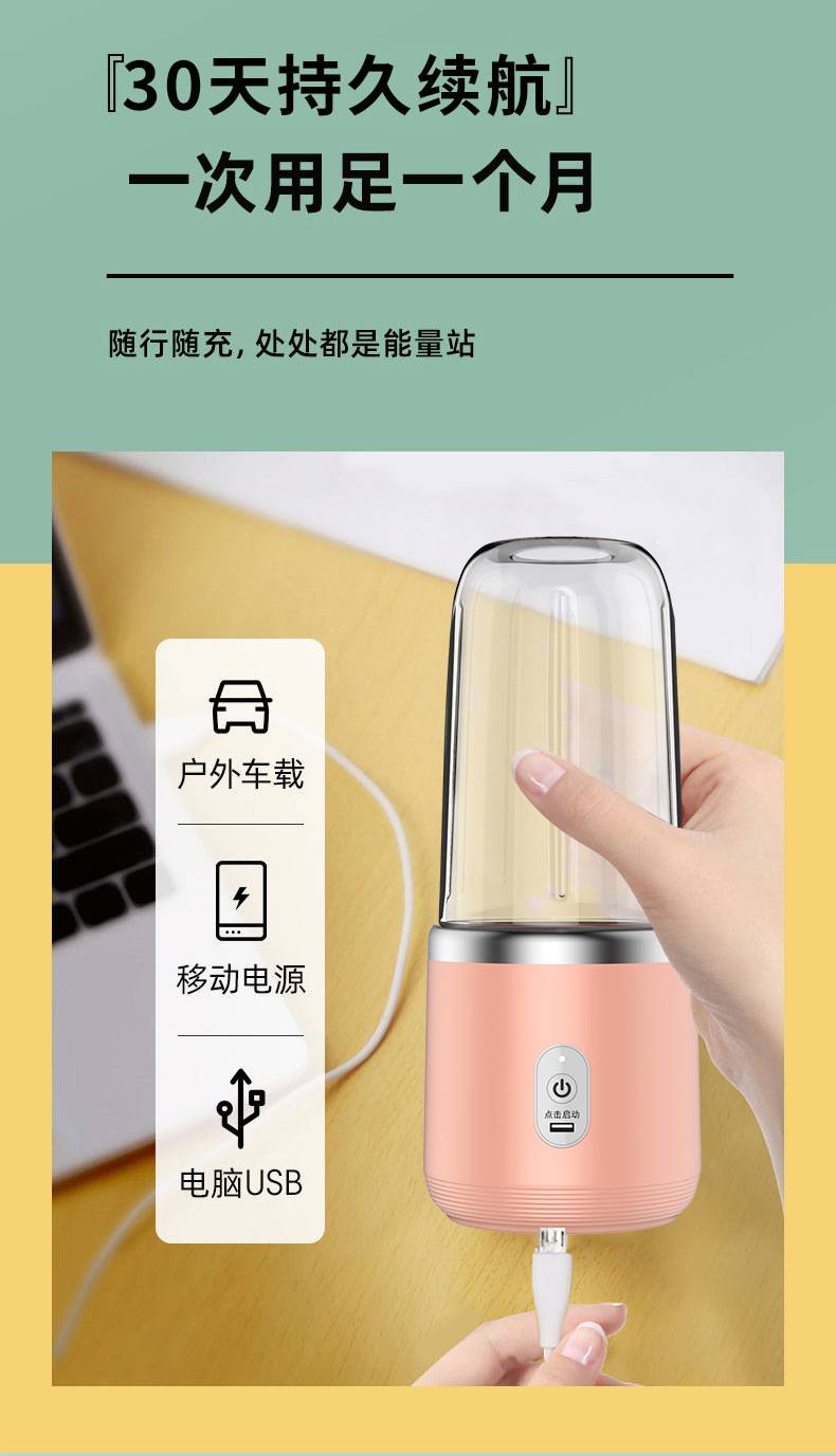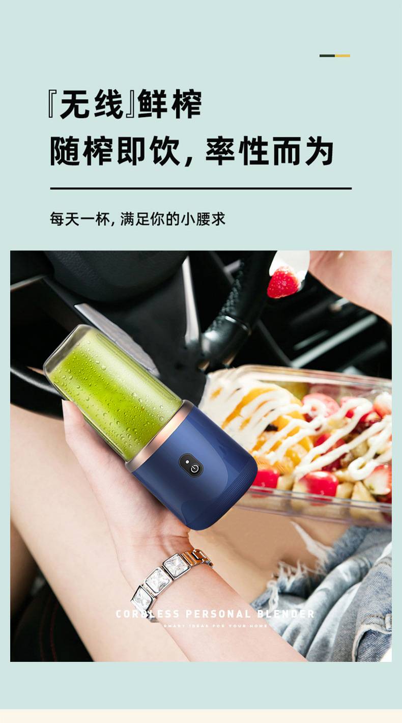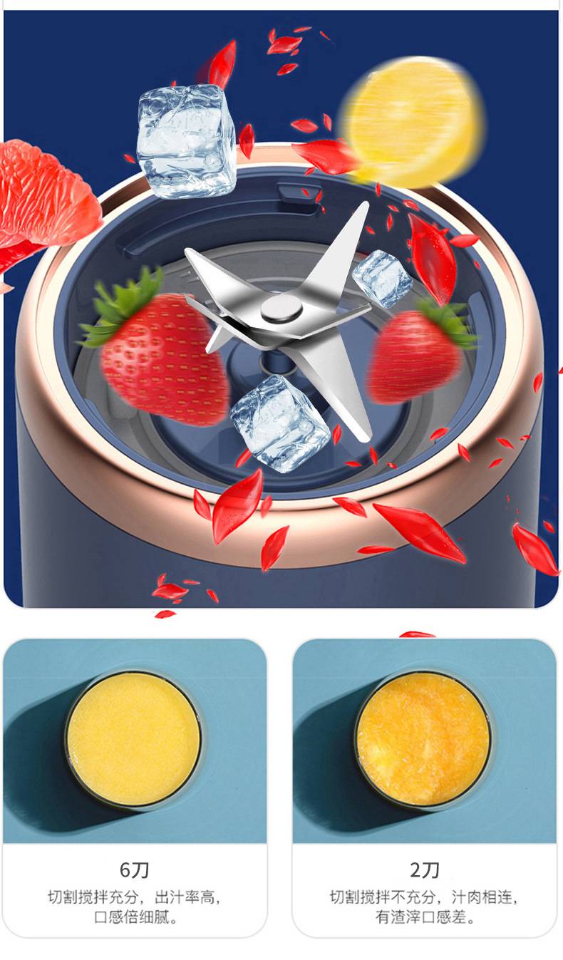 The shigau juicer uses wireless fresh, small portable glass of six blades of fruit to power the juicer