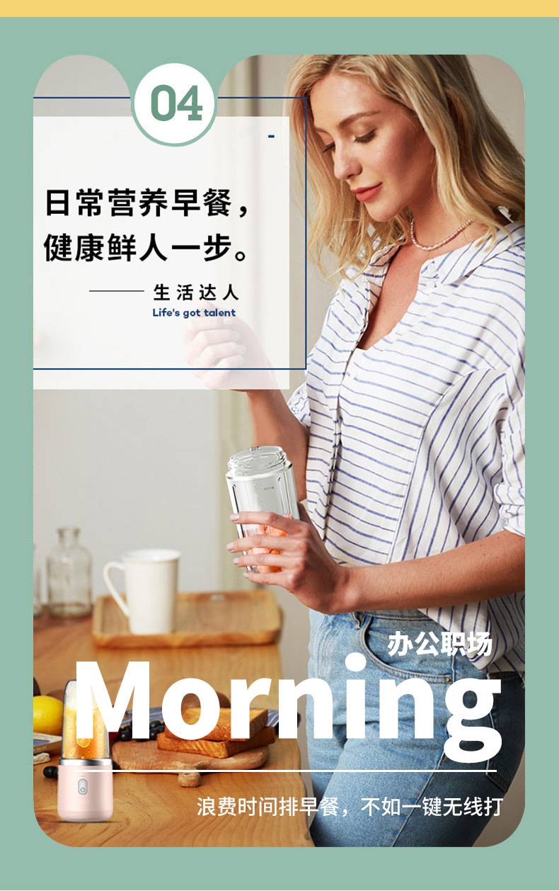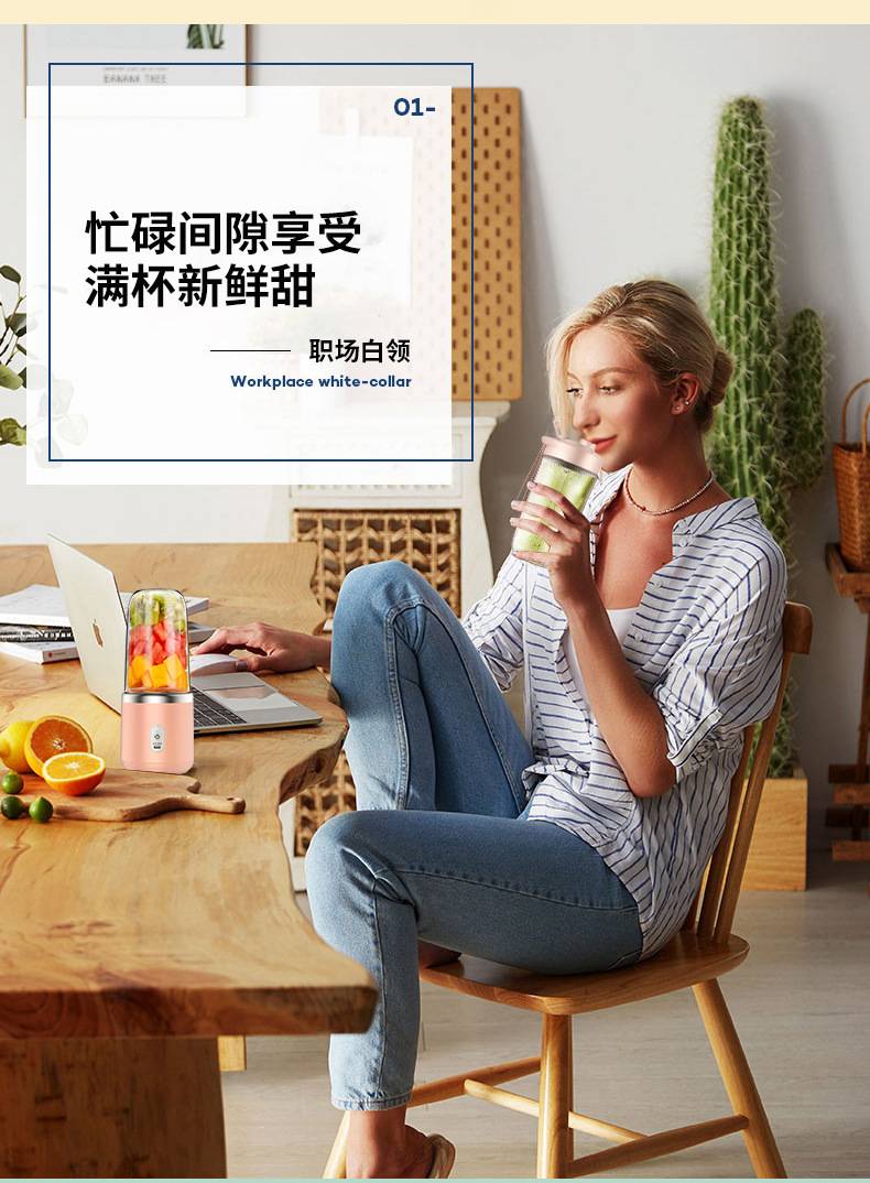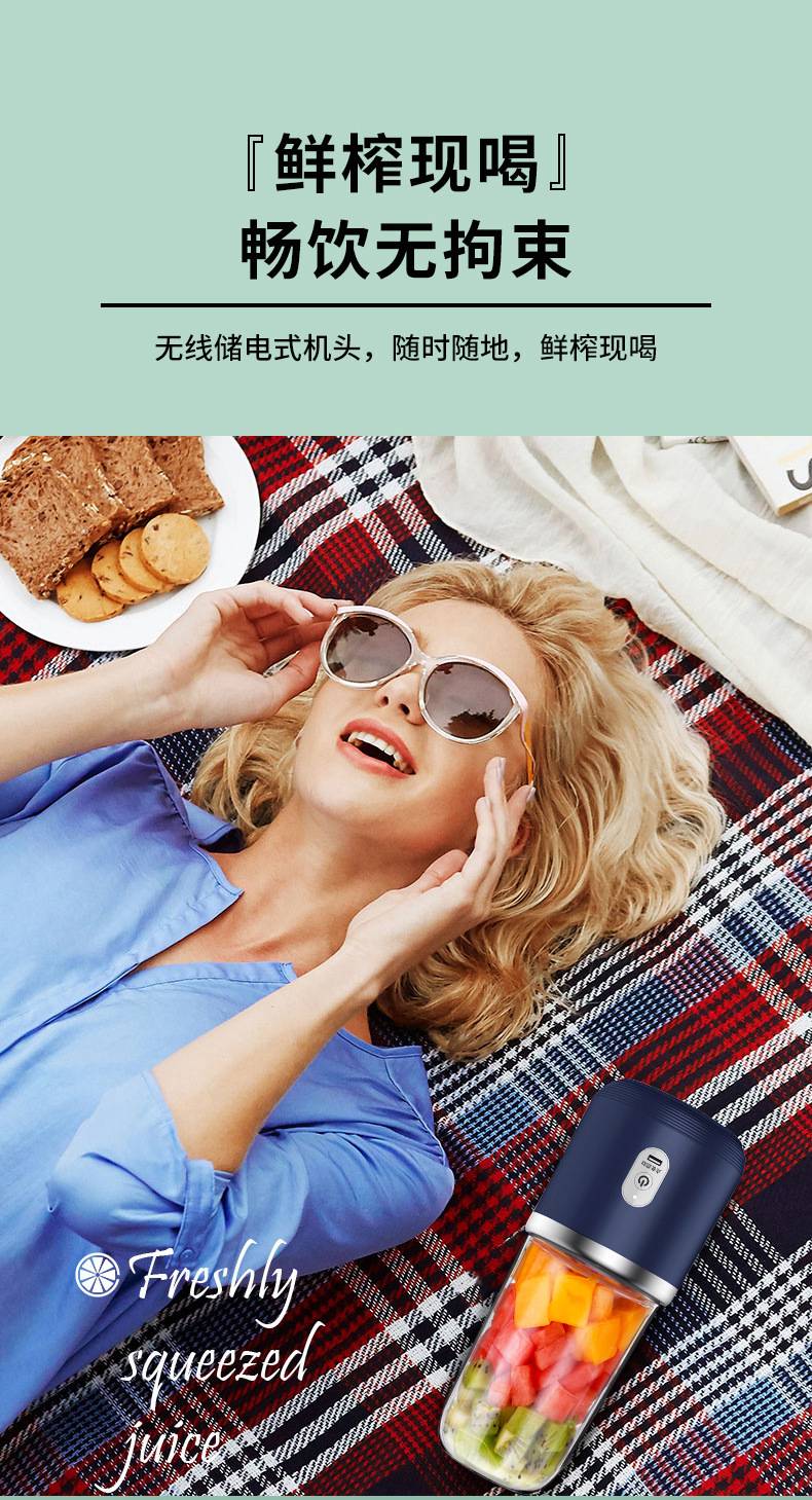 The shigau juicer uses wireless fresh, small portable glass of six blades of fruit to power the juicer