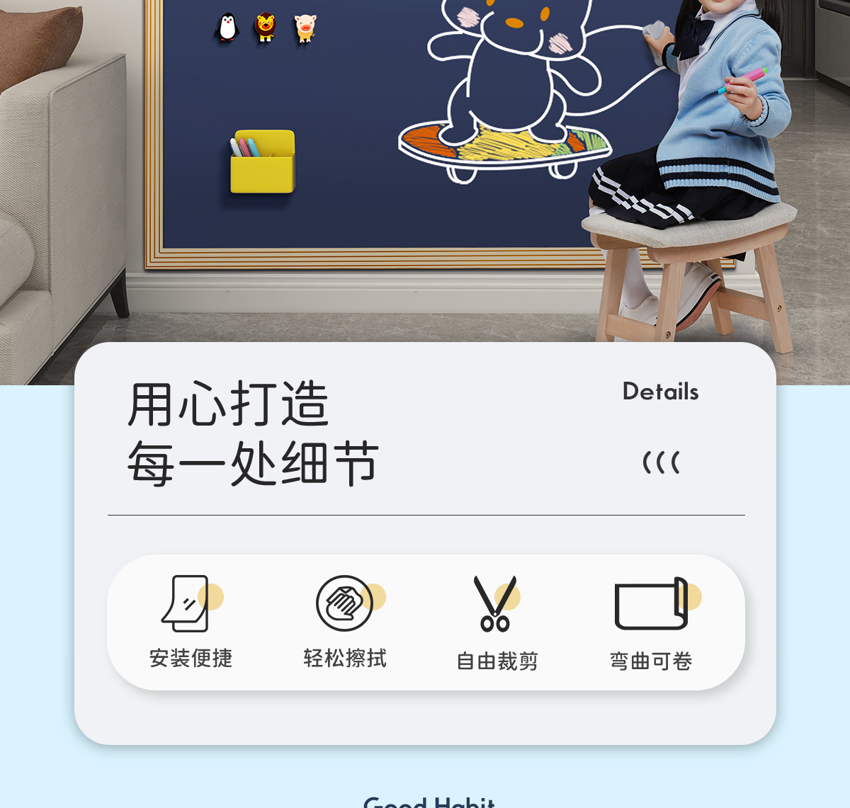 The children's blackboard wall pasters paint plastered plasters with graffiti