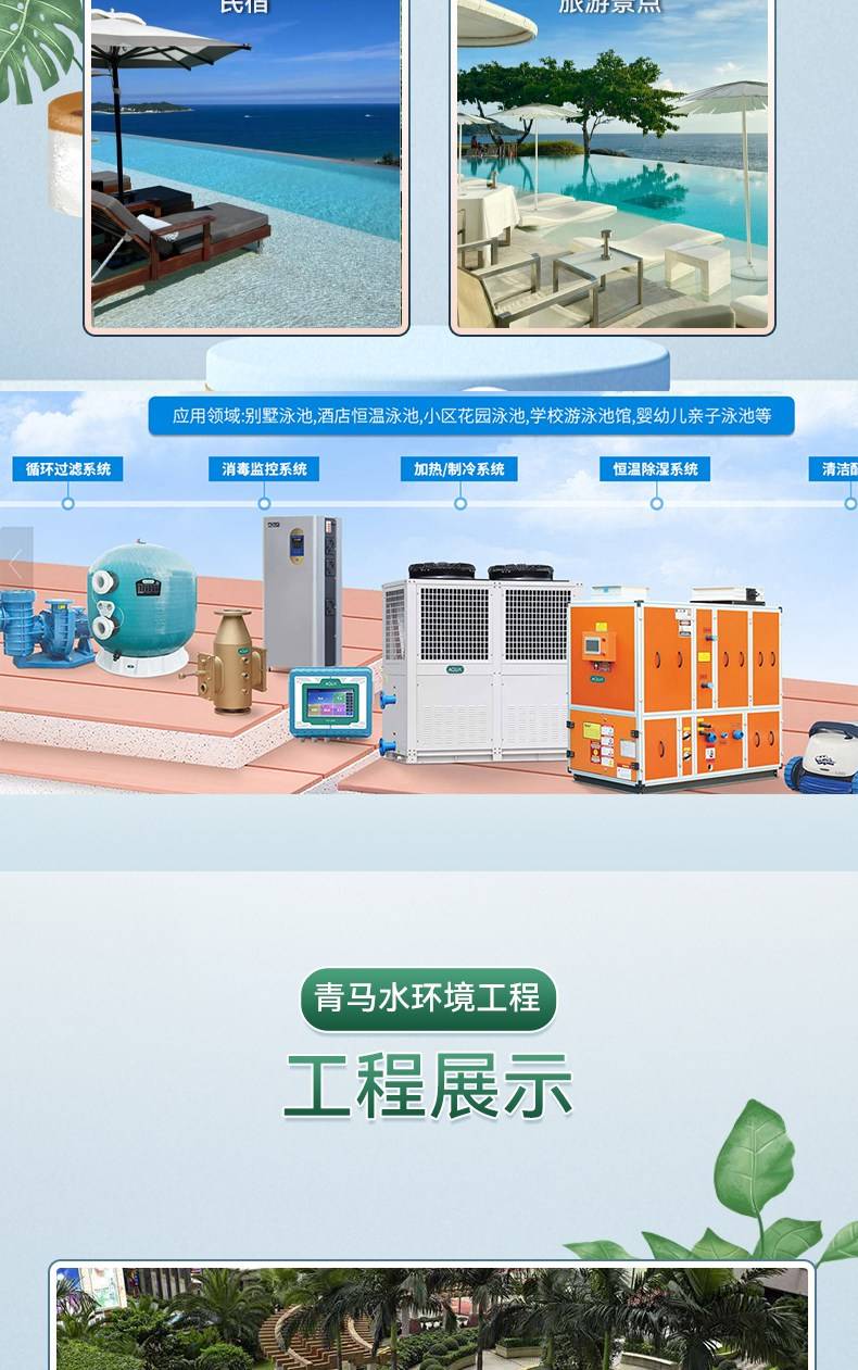 Design, installation, sale, pool equipment, water treatment equipment, water treatment equipment, air source and water heat pumps, other than wet heat pumps, pool mats, sports equipment, installation, ventilation and air conditioning systems, indoor air s
