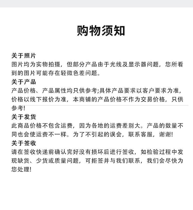 特别提示:商品详情页中(含主图)以文字或者图片形式标注的抢购价等价格可能是在特定活动时段下的价格,商品的具体价格以订单结算页价格为准或言是您与商家联系后协商达成的实际成交价格为准;如您发现活动商品价格或活动信息有异常,建议购买前先咨询商家。