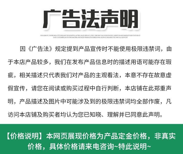 特别提示:商品详情页中(含主图)以文字或者图片形式标注的抢购价等价格可能是在特定活动时段下的价格,商品的具体价格以订单结算页价格为准或言是您与商家联系后协商达成的实际成交价格为准;如您发现活动商品价格或活动信息有异常,建议购买前先咨询商家。