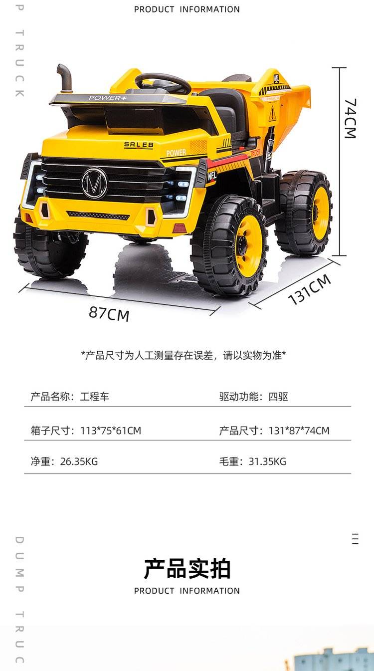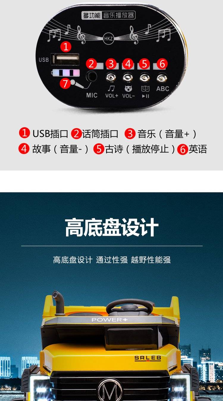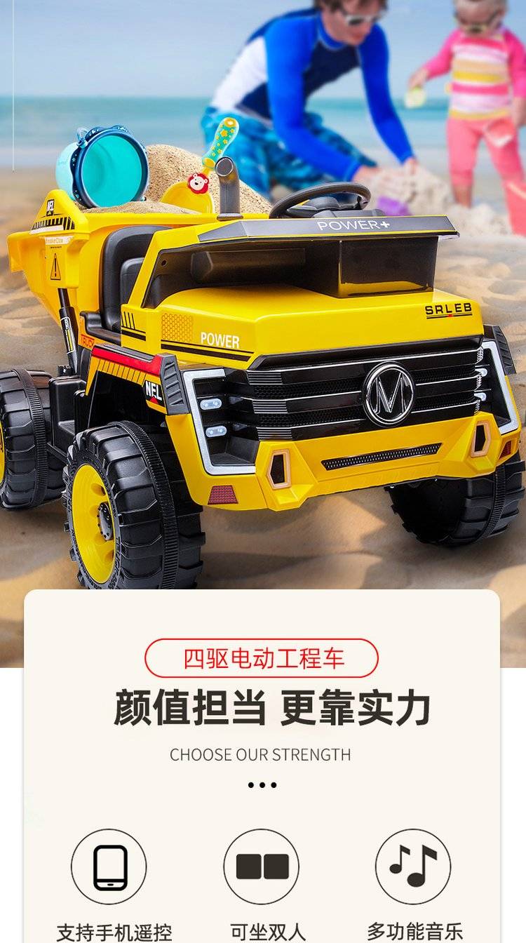A two-seater baby electric four-wheeled baby toy car can ride a baby child tractor engineering cruis